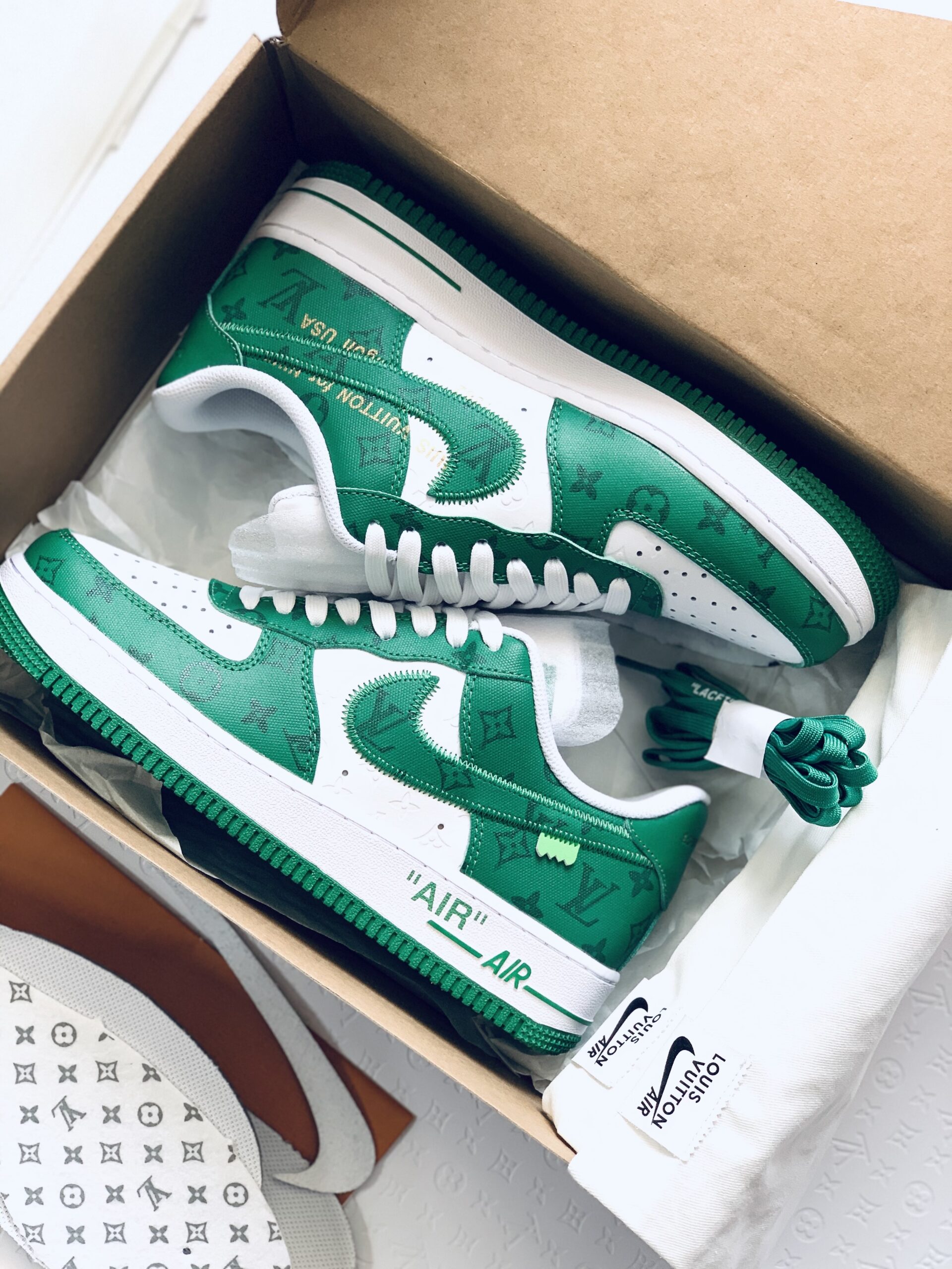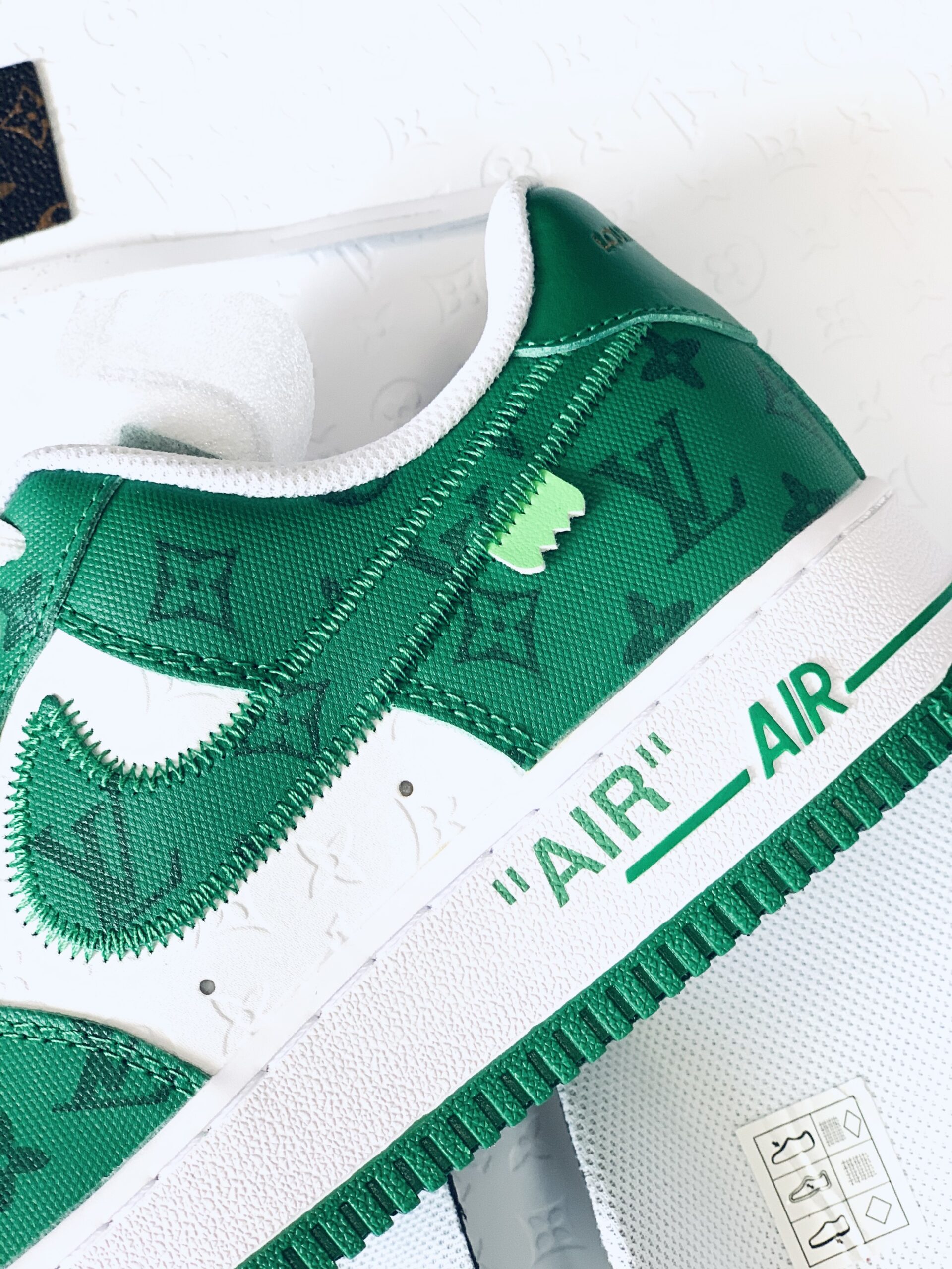 Luxury redefined. This ultra-exclusive AF1 fuses Nike’s timeless silhouette with opulent LV-inspired detailing—premium patent leather, gilded hardware, and signature monogram accents. Air-cushioned comfort meets collector-tier craftsmanship. Built not just to wear, but to own.